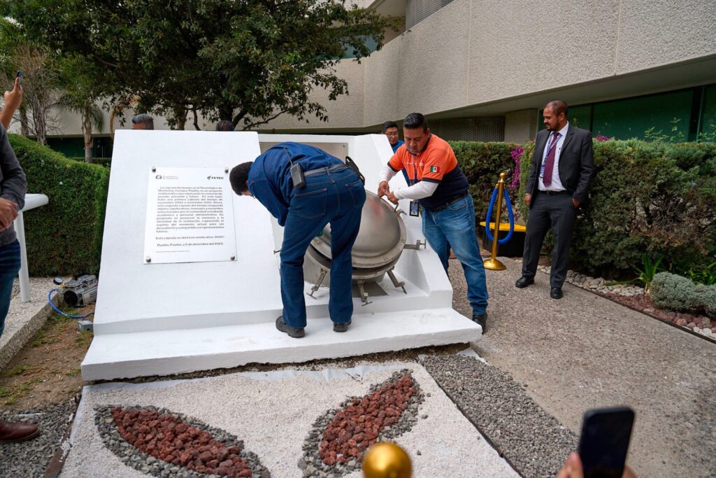 Este martes, la comunidad Tec conformada por colaboradores, padres de familias, directivos, estudiantes, profesores y algunos EXATEC, se reunieron en el Tec de Monterrey campus Puebla, para depositar diversos objetos en la cápsula del tiempo y cerrarla en punto de las 13:45 horas.