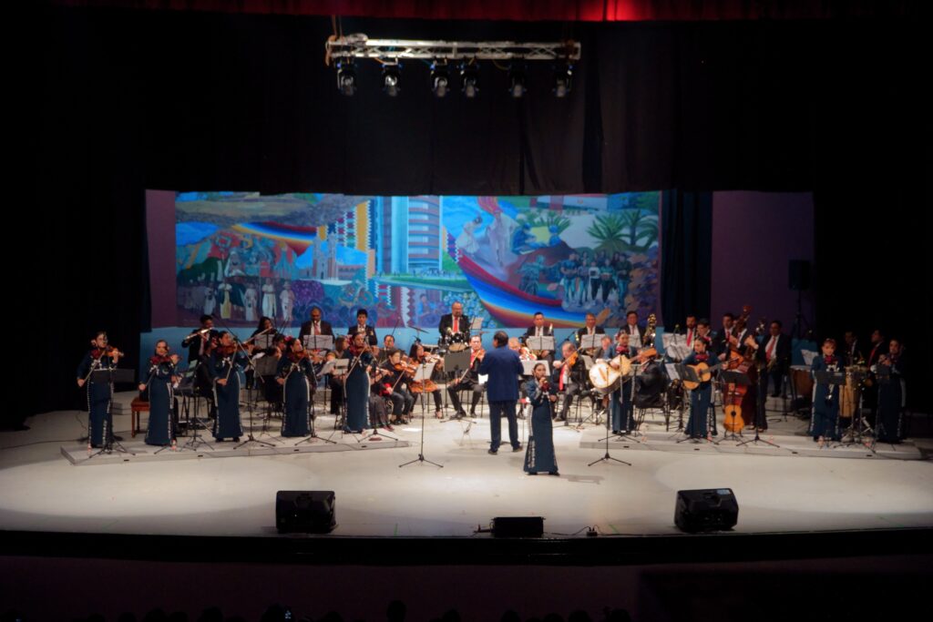 El Concierto Sinfónico ofreció un programa artístico que incluyó Huapango de Moncayo, la Bikina, Popurrí de Mocedades, el Viajero, Ojos Tapatíos, María Linda, el Pastor, Como tu mujer, Contigo aprendí, Costumbres y Me gustas mucho, entre otras melodías que son parte del repertorio musical de México.