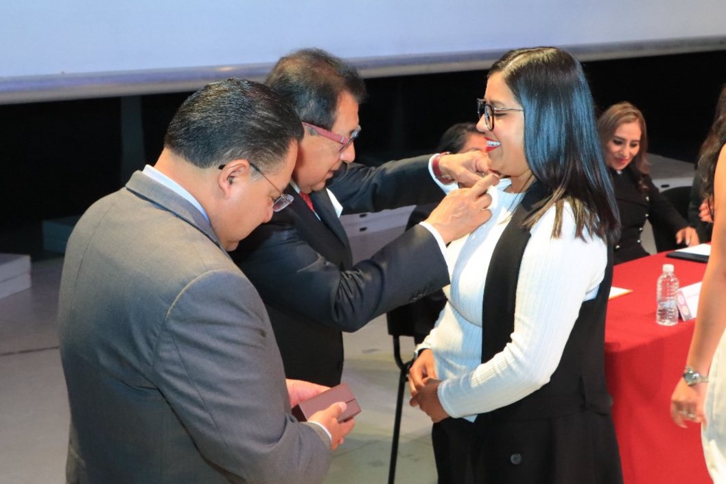 En este marco, el Presidente del Colegio de Contadores Públicos del Estado de Tlaxcala, Contador Público José Paredes Tlachi y el Doctor Serafín Ortiz realizaron la imposición de distintivos a educandos de la Licenciatura en Contaduría Pública que los acredita como estudiantes asociados, en reconocimiento por haber obtenido el segundo lugar en el Maratón de regional de ética y representar a la UATx y a este organismo en el maratón nacional posicionándose entre los diez mejores equipos del país.
