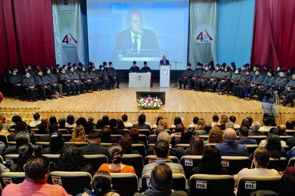Sostuvo que la UATx es plena, síntesis y crisol de 48 años de ser un espacio dedicado a la ciencia, la transdisciplina, la filosofía, las humanidades, las bellas artes y es un vínculo entre proyectos sociales, regionales y nacionales. El exrector llamó a los universitarios a continuar con empeño esta tarea para fortalecerse en el terreno del conocimiento profundo a través de su modelo propio, actualizado e innovador, y con una producción de futuro que magnifica a la Autónoma de Tlaxcala.