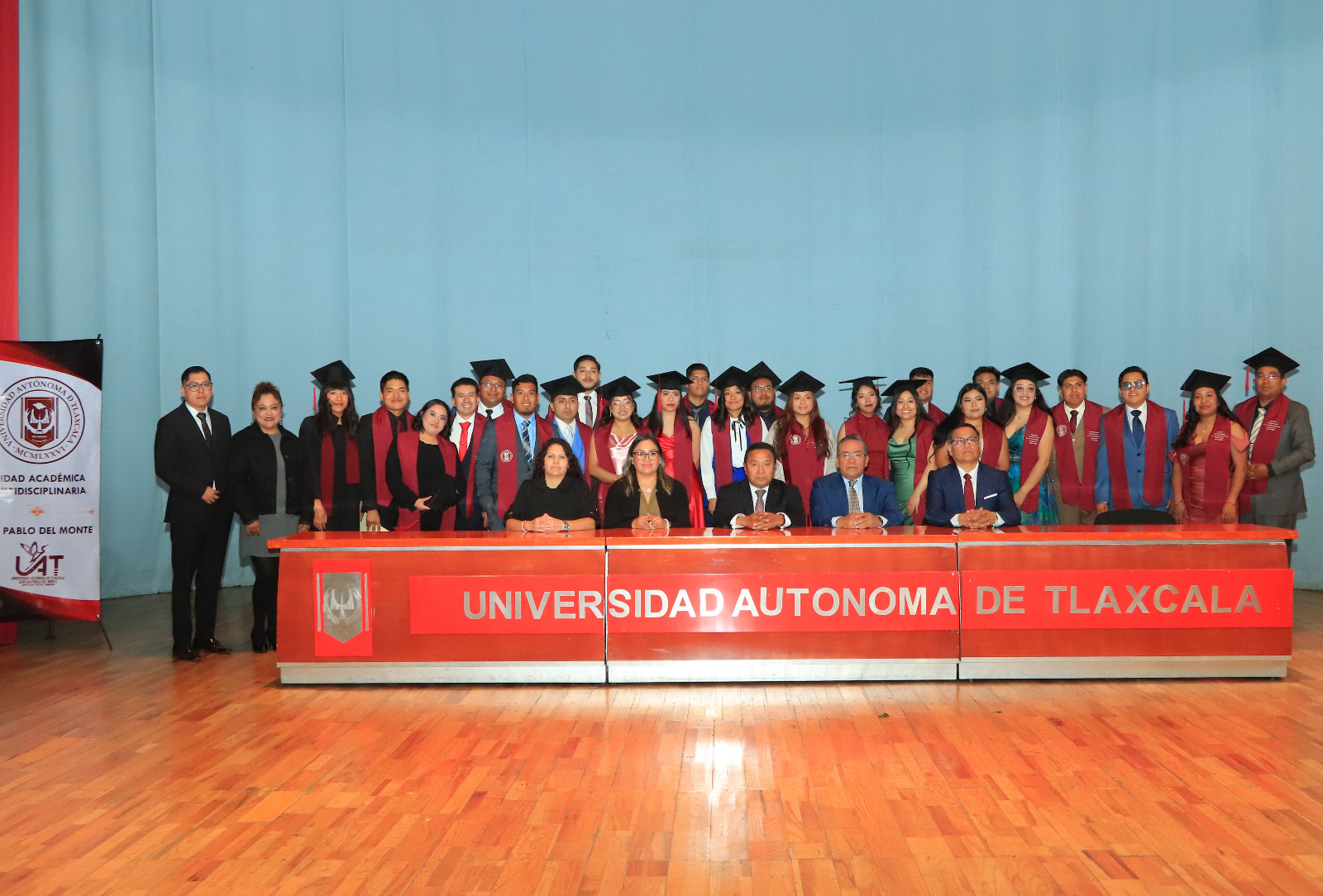 Bajo la ruta que marca el Modelo Humanista Integrador basado en Capacidades (MHIC), los egresados de la Universidad Autónoma de Tlaxcala (UATx) aplicarán en la práctica de su profesión las características del humanismo y serán ejemplo de que la justicia social se cristaliza con su desempeño ante la sociedad, aseguró el Maestro Mauro Sánchez Ibarra, Secretario de Rectoría, durante la solemne ceremonia de graduación de estudiantes de la Unidad Académica Multidisciplinaria Campus San Pablo del Monte (UAMCSPM).