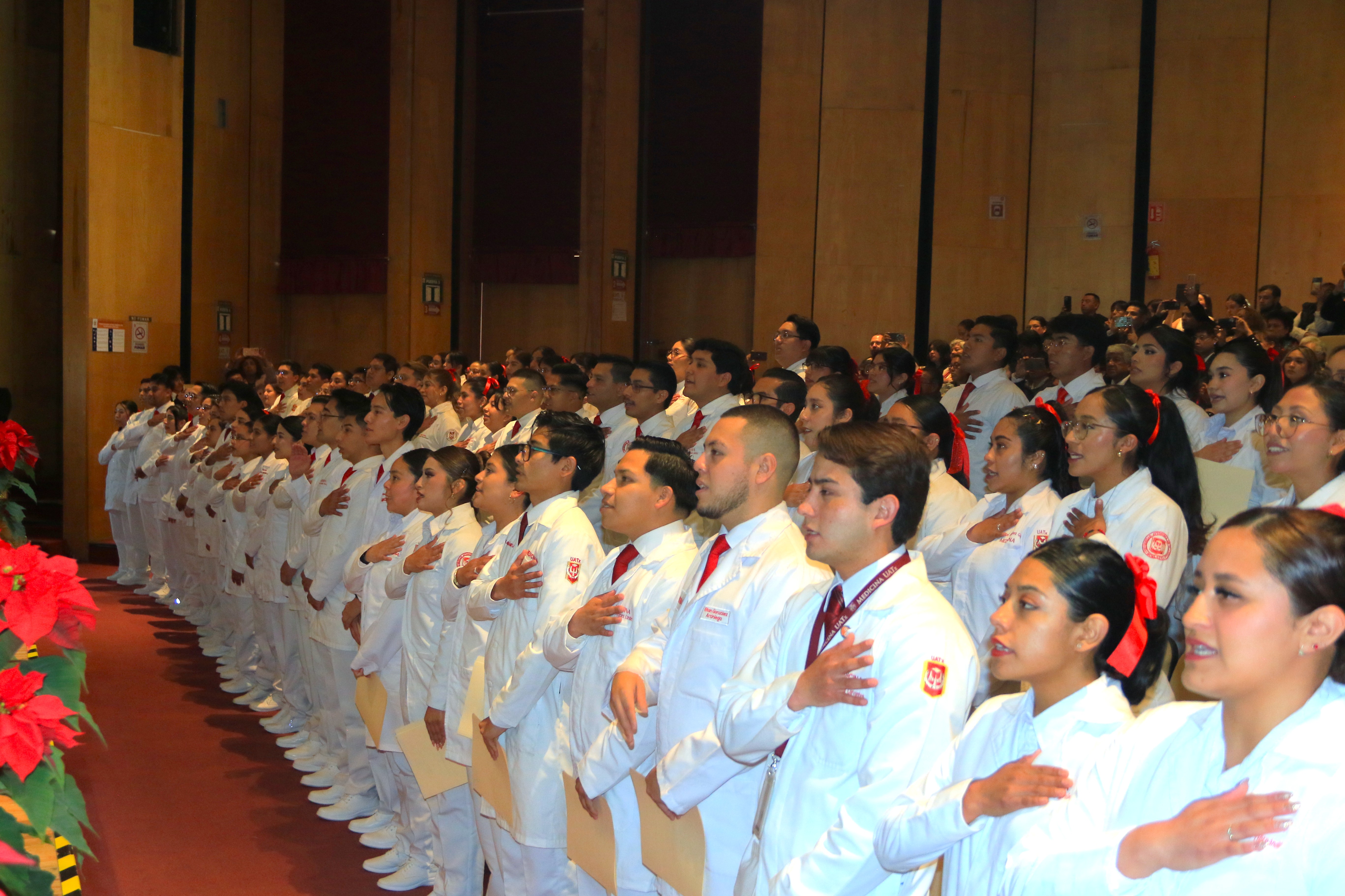 Ante estudiantes, padres de familia, tutores y estructura directiva de la Facultad, durante la formal ceremonia, el Maestro José Reyes Luna Ruiz, Coordinador de la División de Ciencias Biológicas, destacó que la labor médica implica el cuidado de la vida y del bienestar social, por ello, la vocación de la Medicina se forja con estudio constante, sensibilidad, ética y espíritu de servicio.