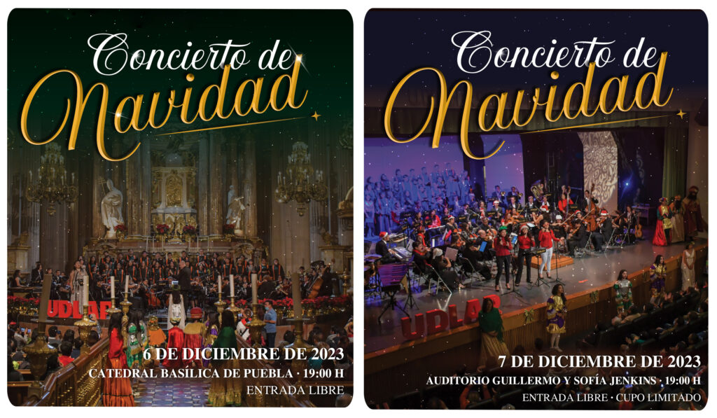 Con el fin de llevar los festejos navideños universitarios a un mayor número de públicos, la Universidad de las Américas Puebla (UDLAP) brindará su tradicional concierto navideño en cuatro espectaculares sedes: la Catedral Basílica de Puebla; la Catedral de Nuestra Señora de la Asunción de Tlaxcala; la Parroquia de San Agustín ubicada en Polanco en la CDMX; y el Auditorio de la Universidad de las Américas Puebla.