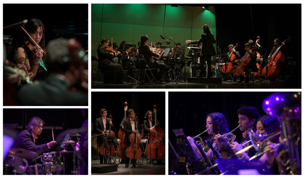 Para cerrar con broche de oro, la Orquesta Symphonia presentó el Poema Mexicano del compositor Galo Ortiz, una pieza que entrelaza distintos géneros tradicionales como el huapango y el danzón. Esta obra, que explora la identidad musical de nuestro país, “busca acercarse a los jóvenes y recordar que lo mexicano también se encuentra en la música, además de la comida y las tradiciones”, explicó la Dra. Reyes Peñaloza, directora de la orquesta.