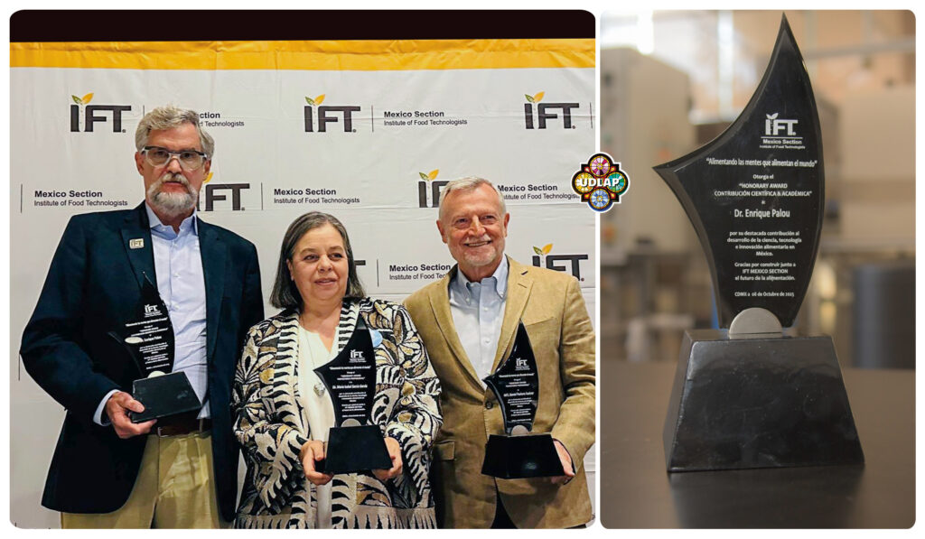 El Dr. Enrique Palou García, profesor de tiempo completo del Departamento de Ingeniería Química, Alimentos y Ambiental de la Universidad de las Américas Puebla (UDLAP), fue galardonado con el premio “Contribución Científica & Académica” otorgado por la sección México del Institute of Food Technologists (IFT), organización más grande del mundo dedicada a la ciencia y tecnología de los alimentos.