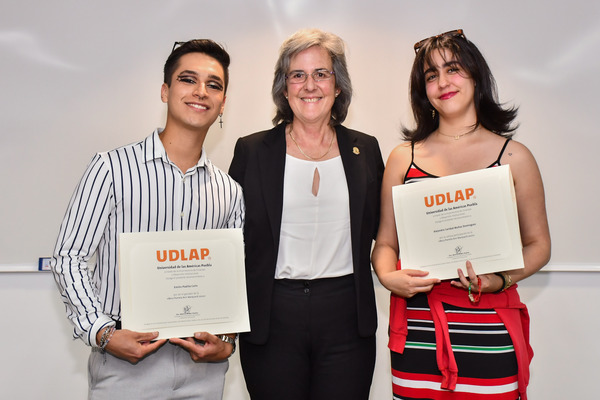 En este evento, también se contó con la presencia de autoridades de la UDLAP, como la Dra. Misa Ito Sasaki, directora académica del Departamento de Artes; el Dr. Juan Manuel San Martín Reyna, director general de Vinculación y Desarrollo Institucional; y Alejandra Caridad Muñoz Domínguez, estudiante del octavo semestre de Artes Plásticas y tercer lugar en la convocatoria de la beca. Montserrat Morán Linares, estudiante de séptimo semestre de Artes Plásticas y segundo lugar en la convocatoria de la beca no estuvo presente ya que se encuentra de intercambio en Corea.