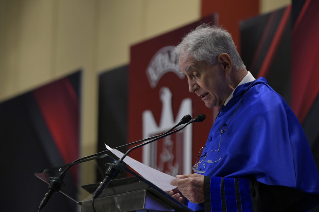 La ceremonia finalizó con la entrega de las insignias doctorales, marcando un momento solemne y significativo, donde la comunidad universitaria reconoció formalmente la contribución intelectual y el legado académico del Dr. Buttiglione. Los símbolos doctorales, representativos de la máxima distinción que otorga la Institución, fueron entregados en medio de aplausos y la admiración de todos los presentes.