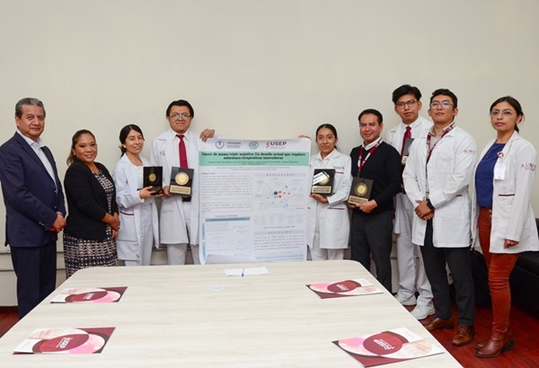 Con el trabajo titulado “Cáncer de mama triple negativo: un desafío actual que requiere soluciones terapéuticas innovadoras”, las y los estudiantes, Laura Brenda Carpinteyro Báez, Sandra Ximena Cruz Cuaya, Carlos Eduardo González González y Edwin Bernabé Núñez, coordinados por el doctor Noé Velázquez Márquez, obtuvieron el primer lugar en este certamen, realizado en el marco del Sexto Congreso Nacional de Actualización Médica “MEDCON 2024” en la Ciudad de México.