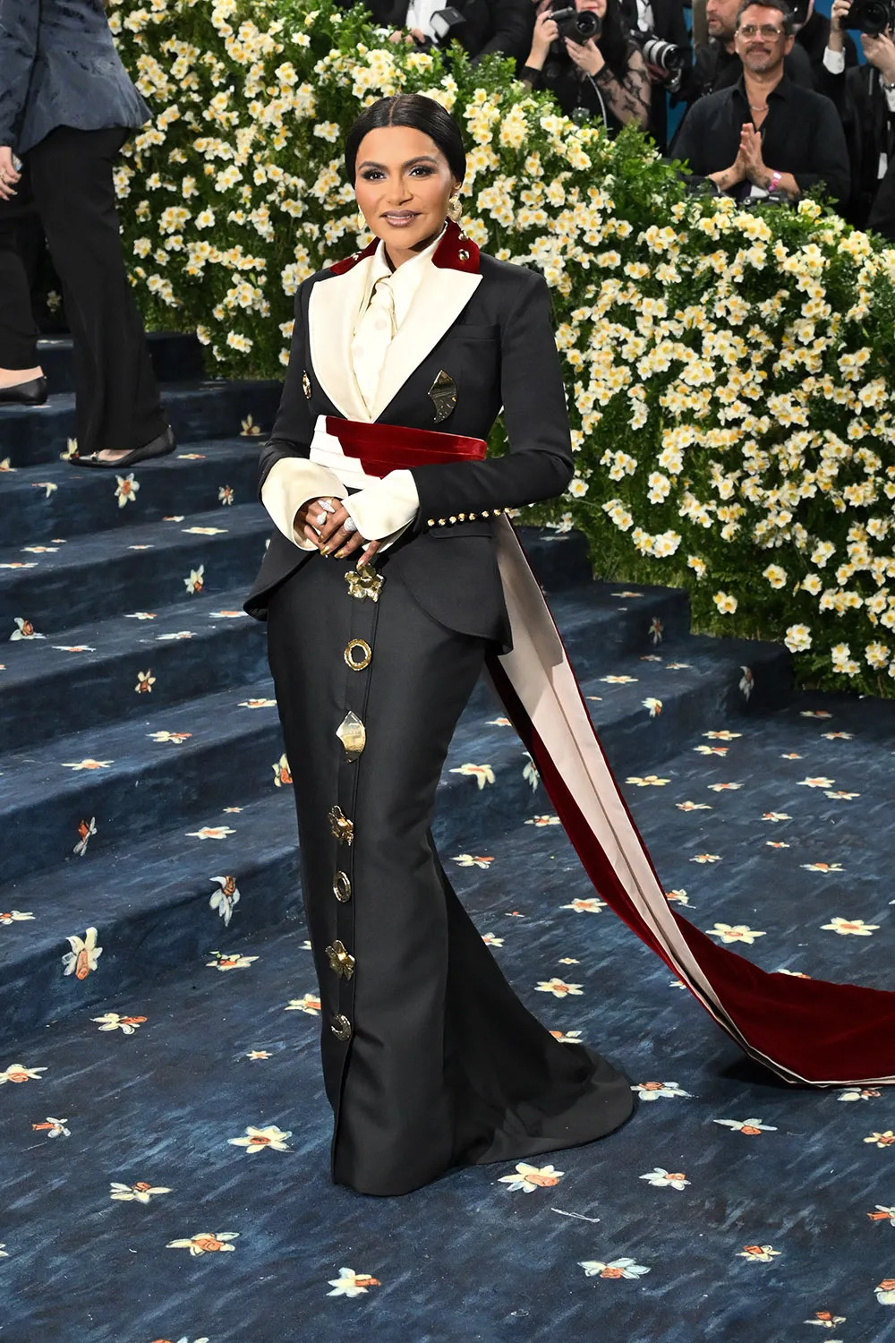 Fue la primera Met Gala de Tyler Perry, quien arribó en un Gray a su medida, además se mostró encantado de adoptar el código de vestimenta centrado en el dandismo, eligiendo una capa de seda con bordados de cristal sobre un esmoquin, ambos de Brandon Gray. El cineasta complementó su look con un reloj Richard Mille, gemelos de Jason of Beverly Hills, joyas de Sebastian Jaramillo y zapatos de Christian Louboutin.