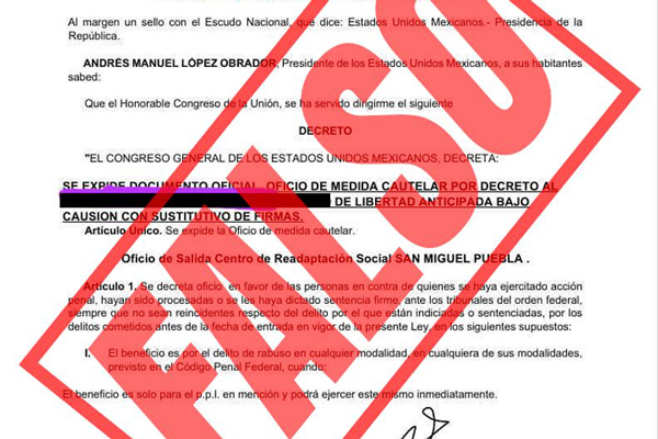 Mediante WhatsApp, circula la imagen de un oficio apócrifo, el cual notifica sobre la libertad anticipada de personas privadas de la libertad en los centros penitenciarios. Esta fotografía es acompañada de mensajes que solicitan dinero en efectivo para dar seguimiento al supuesto trámite.
