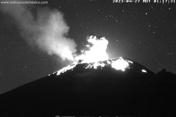 Asimismo, durante este periodo se registraron cuatro explosiones, una moderada a las 01:16 horas, de la que se captó la explosión y estruendo del volcán, así como la expulsión de material incandescente y tres menores, ocurridas ayer a las 18:17 horas y hoy a las 03:48 y 06:06 horas, con fragmentos balísticos en los flancos del volcán.