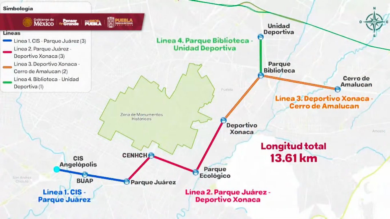 El proyecto conectará Angelópolis, el Centro Histórico y Amalucan, a lo largo de 13.61 kilómetros, integrando 9 estaciones, 96 torres y 153 cabinas en su fase inicial, con capacidad para 10 pasajeros por cabina.