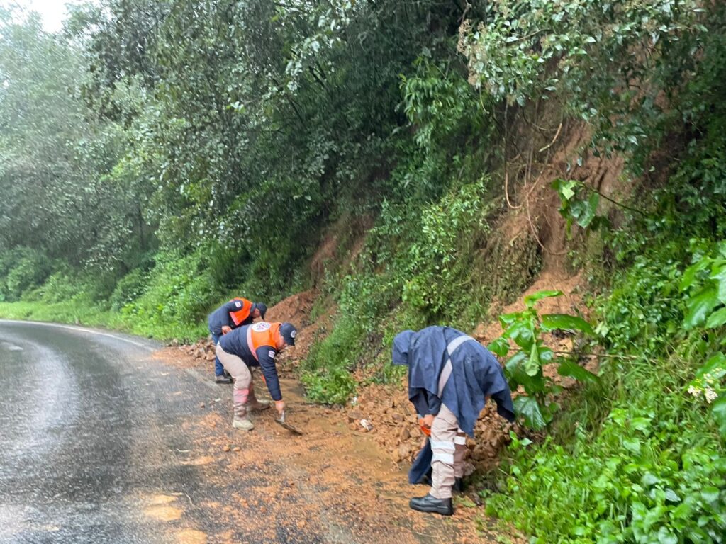 A su vez, en Xochitlán de Vicente Suárez se registró el desprendimiento de tierra y flujos de lodo en carretera estatal Acuaco-Huehuetla en el paraje La Cumbre, que es atendido por Protección Civil Municipal.