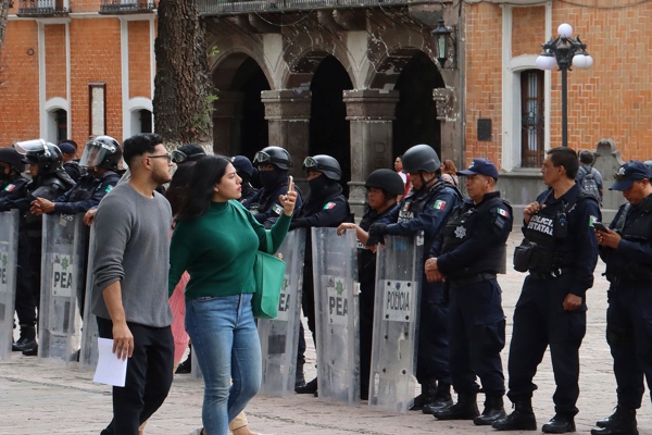 LEER: Policías estatales intentan frenar marcha pacífica contra el Autotrén en Tlaxcala