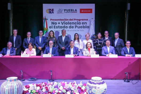 Para erradicar la violencia en cualquiera de sus expresiones y garantizar la paz social en Puebla, el gobernador Sergio Salomón y el director general de Banco Santander México, Felipe García Ascencio presentaron el programa “No + Violencia”, que busca formar a la población en la prevención de la violencia mediante capacitaciones y contenidos informativos.