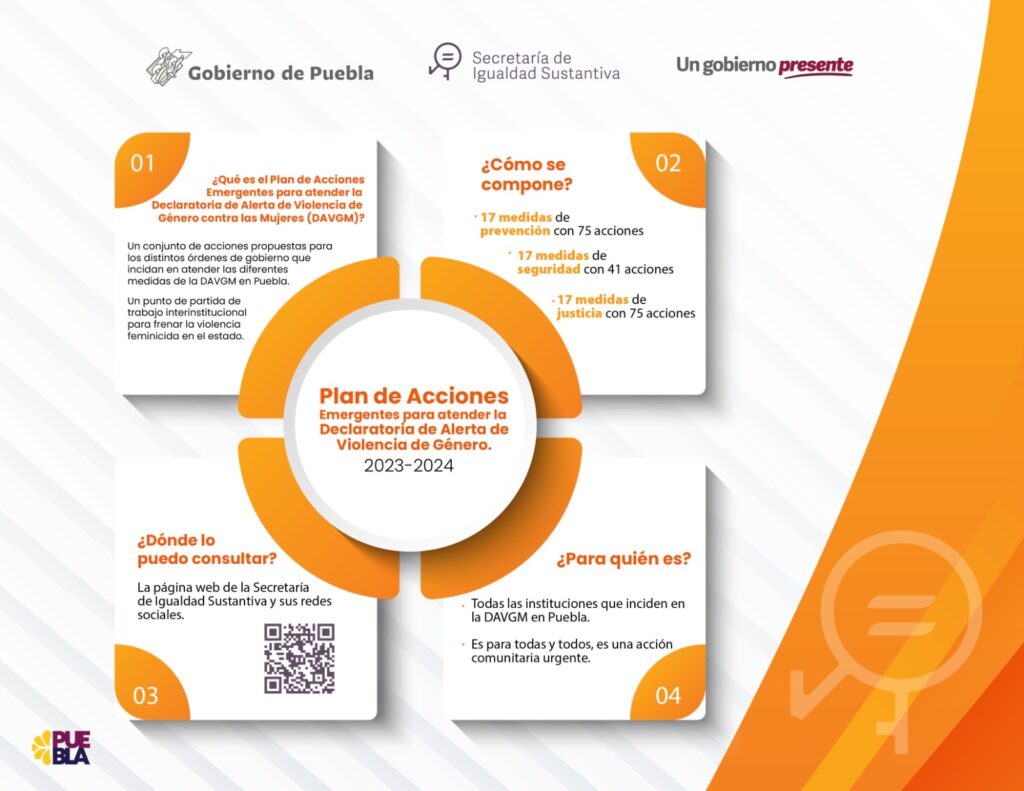 El plan puede ser consultado en la página web de la SIS (sis.puebla.gob.mx), y a través de las redes sociales de la dependencia: @IgualdadGobPue (Facebook y Twitter). Mediante la aplicación de modelos de acción entre municipios, dependencias estatales y sociedad civil, el gobierno de Puebla trabaja para prevenir y erradicar las violencias hacia la mujer.