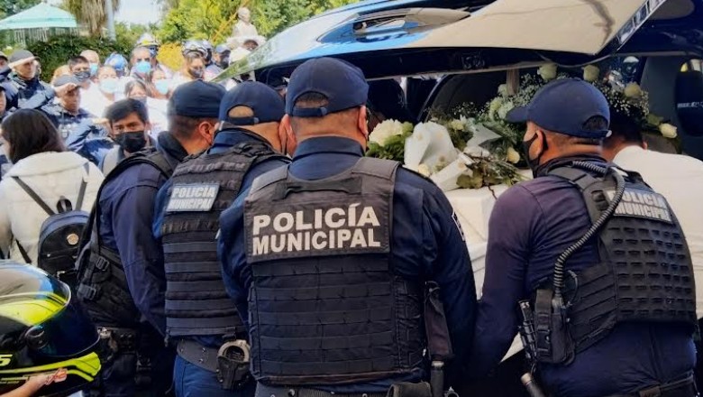 Familiares, amigos, elementos de Seguridad Pública funcionarios montaron guardias de honor e hicieron el pase de lista al joven policía asesinado a disparos el pasado lunes
