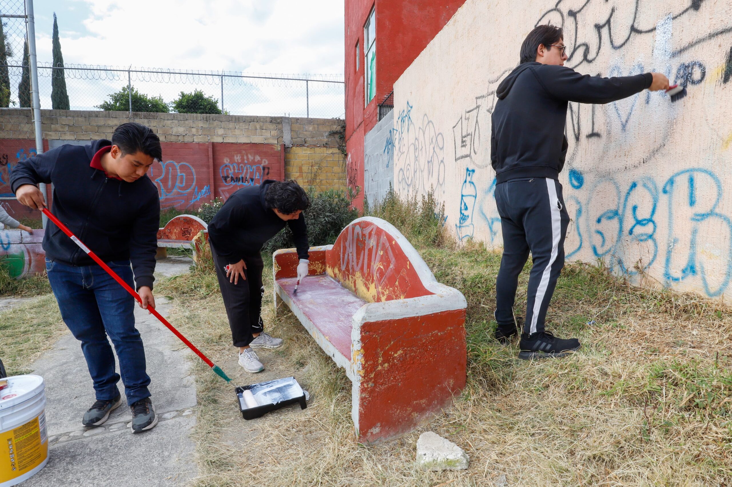 Finalmente, entre las acciones que se ejecutaron están el barrido manual, retiro de la hierba, pintura en mobiliario deportivo y juegos infantiles, cambio de botes de basura y suministro de luminarias, entre otros trabajos de limpieza.