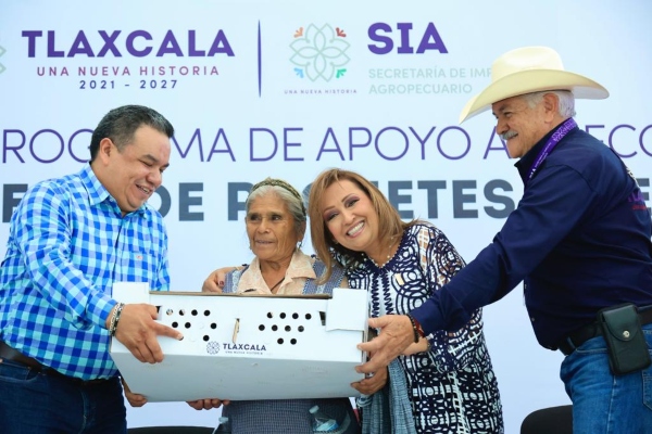 En su intervención, la titular del Ejecutivo local informó que, a través de la Secretaría de Impulso Agropecuario (SIA), su gobierno invirtió 13 millones 127 mil 391 pesos para dispersar este año 18 mil 500 paquetes de aves de postura, pollo de engorda, pato, guajolote, conejo y abeja reina en los 60 municipios del estado.