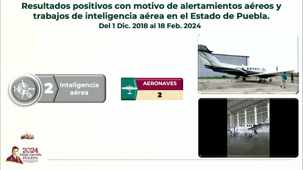 e 2018 a la fecha, en el estado de Puebla se han asegurado 7 aeronaves vinculadas con actividades criminales, así como un laboratorio para la elaboración de metanfetaminas.
