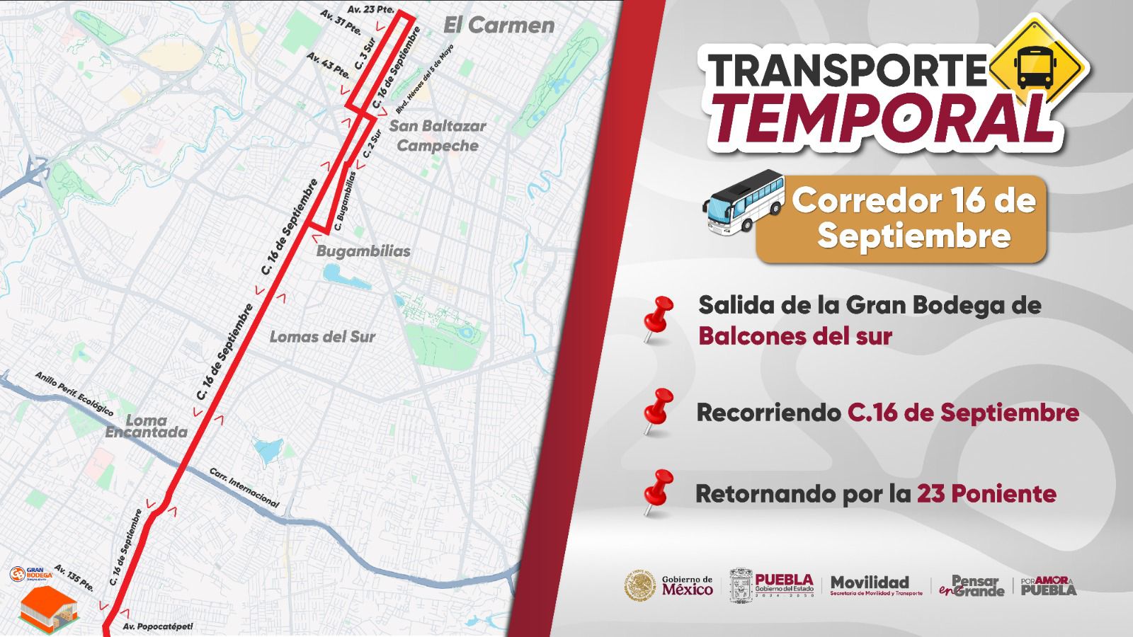 La titular de @MTGobPue , Silvia Tanús anuncia Servicio de Transporte Temporal para subsanar déficit en la ciudad de Puebla y Zona Metropolitana. Se habilitan 4 corredores: