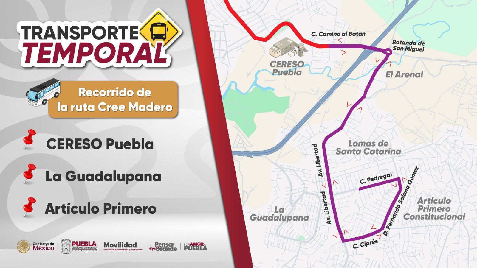 #Puebla 📣Los Servicios de Transporte Temporal se operarán por las empresas Estrella Roja y ADO con dos horarios de atención por alta demanda: