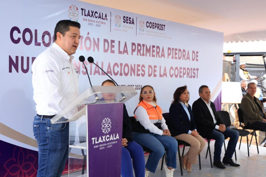 La gobernadora Lorena Cuéllar Cisneros colocó la primera piedra de las oficinas de la Comisión Estatal Para la Protección Contra Riesgos Sanitarios del estado de Tlaxcala (Coeprist) que estarán ubicadas en Santa Ana Chiautempan con la finalidad de brindar mayor bienestar a la población y los trabajadores.