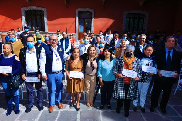 La titular del Ejecutivo local, Lorena Cuéllar Cisneros, acompañada de la directora general de Pensiones Civiles del Estado de Tlaxcala (PCET), Radahid Hernández López, entregó 60 resolutivos de pensiones, con lo que se concluye al 100 por ciento la entrega de pagos rezagados por jubilación, vejez y viudez.