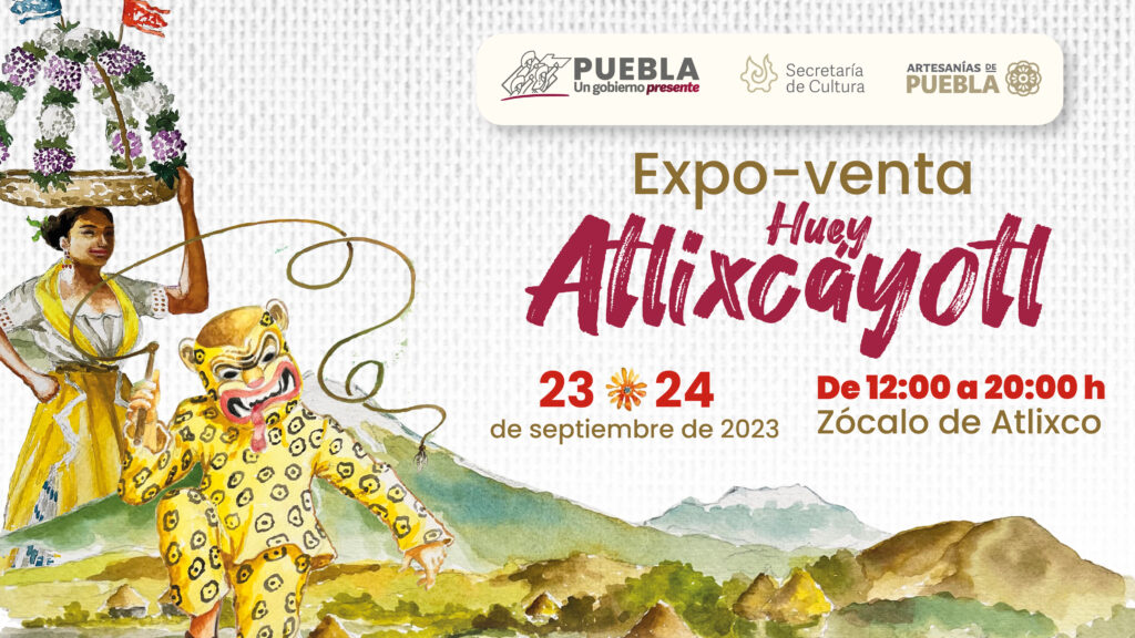 El Festival Huey Atlixcáyotl es una fiesta cultural en la que se presentan danzas y bailes tradicionales de diversas regiones del estado. Este año, será realizado del 22 al 24 de septiembre en el zócalo y el Cerro de San Miguel del municipio de Atlixco. Para más información del festival, así como de la expoventa, las y los interesados pueden ingresar a las páginas de Facebook “Artesanías de Puebla” y “Ayuntamiento de Atlixco”.