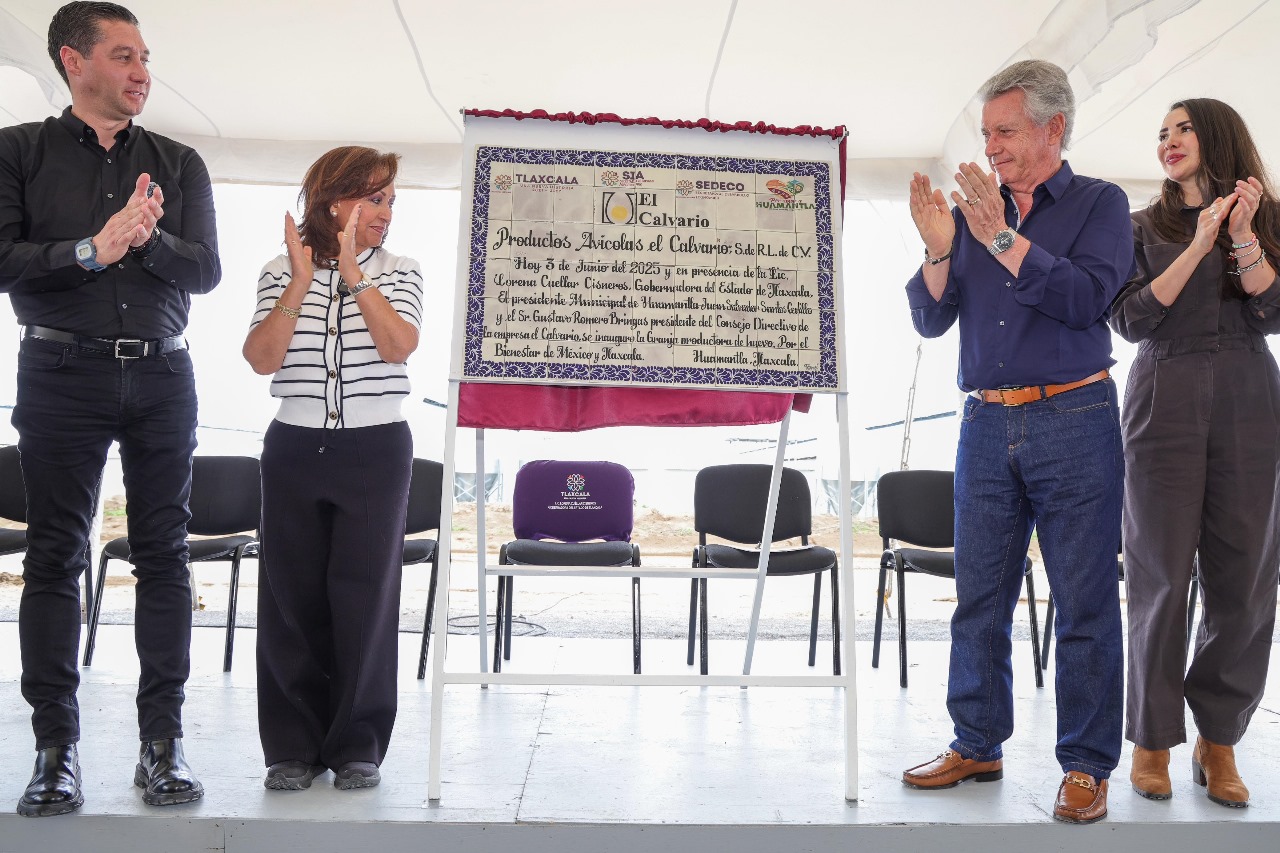 La gobernadora Lorena Cuéllar Cisneros inauguró las instalaciones de la empresa de productos avícolas “El Calvario” S. de R.L. de C.V. en Huamantla, con una inversión de mil 250 millones de pesos de capital mexicano y la generación de 300 nuevos empleos directos, con una producción de 2.3 millones de huevos al día que abastecerán el mercado de Puebla y Tlaxcala.