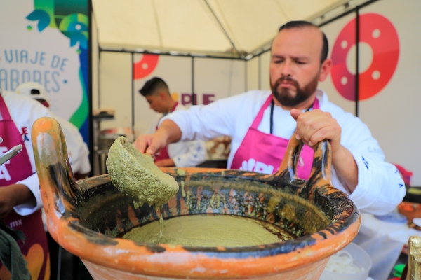 Además, destacó que Puebla tiene por primera vez participación en el pabellón gastronómico del “Tianguis Turístico”, en donde las cocineras tradicionales Margarita Villegas y María Antonia Cecilio, ambas de Tlatlauquitepec, ofrecieron tlayoyos tradicionales del municipio y socios de la Cámara Nacional de la Industria Restaurantera y Alimentos Condimentados (CANIRAC), en alianza con la Secretaría de Turismo, llevaron mole poblano y pipián verde para el disfrute de los asistentes.