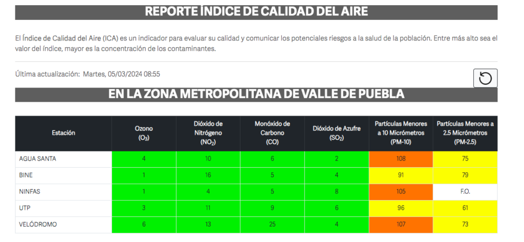 La ciudad de Puebla y su zona metropolitana mantienen mala calidad de aire, derivado de las partículas suspendidas generadas por la expulsión de ceniza por parte del volcán Popocatépetl.