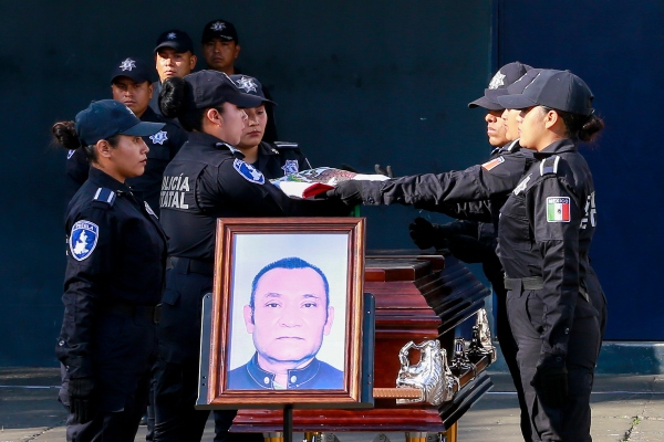 El gobernador Sergio Salomón presidió el homenaje a Arturo Núñez Martínez, policía estatal que perdió la vida en cumplimiento de su deber.