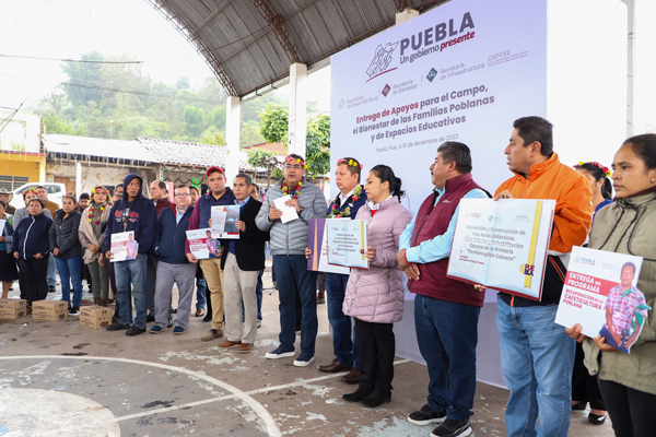 Lo anterior lo refirió al entregar en Tlaola: 11 títulos de propiedad; 38 apoyos de la recuperación de la cafeticultura poblana, por más de 818 mil pesos; 26 mil 400 acciones de producto lácteo, por más de 402 mil pesos; la constancia de la construcción del pavimento con concreto asfaltico del camino que va de la localidad La Gallera a Tlapanalá por 4.6 millones de pesos; así como constancias de construcción de espacios educativos.