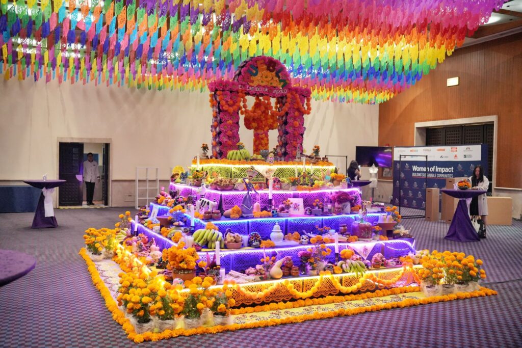 Como parte del foro, el Hotel Camino Real Polanco, sede del evento, alberga una ofrenda poblana de cinco niveles, elaborada por artesanas y artesanos de diversos municipios del estado de Puebla.
