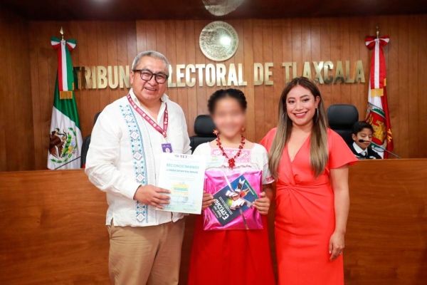 La magistrada presidenta del Tribunal Electoral de Tlaxcala, Claudia Salvador Ángel destacó la participación de las alumnas Marlenne Martínez Matlalcuatzi y Viviana Dariany Ríos Ramírez de la primaria Bilingüe “Coyolxauhqui” de Ixtenco; también de Karla Fernanda Mendoza Pérez y Javier Amaro Montiel, de la escuela “Benito Juárez” de San Pablo del Monte, así como de Fernando Blancas Salado y José Miguel Rivera Guerrero, del Internado “General de División José Amarillas”.