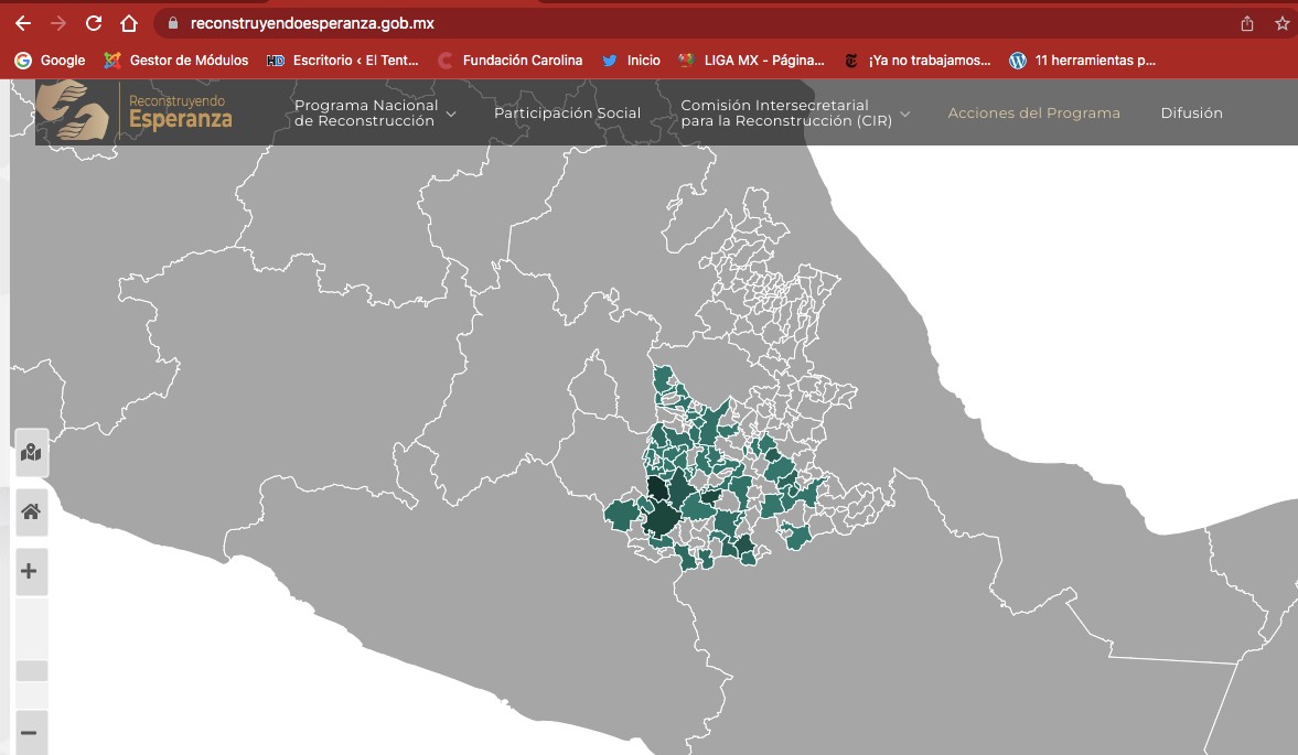 Según los datos existentes de Puebla en la plataforma del Plan Nacional de Reconstrucción (PNR), en https://reconstruyendoesperanza.gob.mx/, durante 2022 la entidad tuvo una parálisis en los trabajos y proyectos en todos los rubros que se deben ejecutar en 54 municipios: Salud, Vivienda, Educación y Cultura.