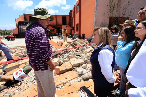 También examinó las viviendas de San Marcos Guaquilpan que con más daños y que son inhabitables debido a que presentan diversas afectaciones, como caída de techos, bardas, destrucción total o parcial de algún área, entre otras afectaciones.