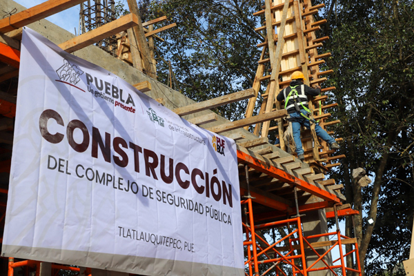 Llegando a #Tlatlauquitepec, pasamos a supervisar la construcción del Complejo de Seguridad Pública. Ya lleva un avance del 37%. Estará listo, a más tardar, en dos meses y medio.