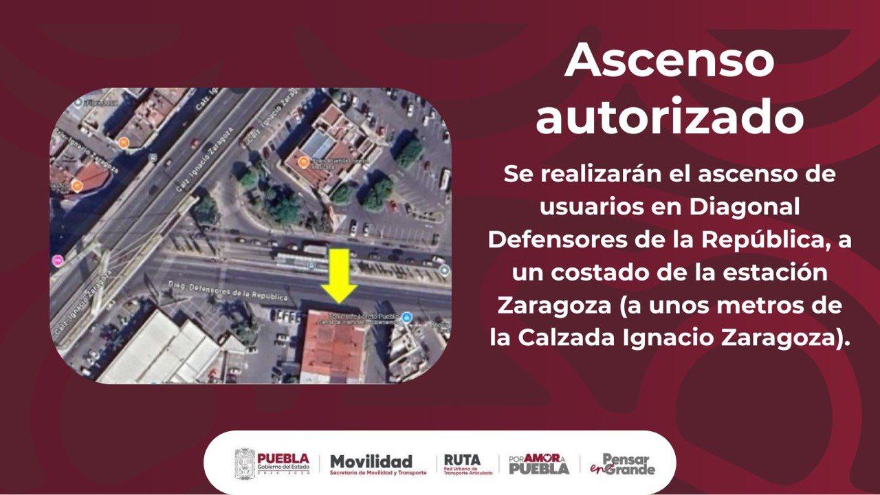 Las unidades realizarán el ascenso de usuarios en Diagonal Defensores de la República, a un costado de la estación Zaragoza (a unos metros de la Calzada Ignacio Zaragoza https://maps.app.goo.gl/ugJdXPAhnUPP1uNz9).