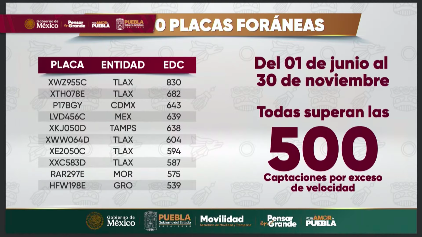 “Los datos son contundentes y alarmantes (…) Estas cifras no solo son inaceptables, son un llamado urgente para actuar con toda la fuerza del estado (…) A esta crisis se suma un fenómeno que ha potencializado el riesgo: el uso de placas foráneas para evadir la cámaras de fotoinfracción“, remarcó al justificar la necesidades hacer estos operativos contra quienes circulan a alta velocidad en las principales vías de comunicación, en la capital poblana y zona metropolitana.
