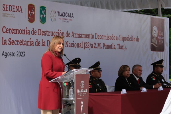 La gobernadora Lorena Cuéllar Cisneros reafirmó su compromiso de ejecutar la política social de paz impulsada por el presidente de la República, Andrés Manuel López Obrador. Lo anterior, al encabezar la ceremonia de destrucción de armamento por parte de la Secretaría de Defensa Nacional (Sedena), en la 23ª Zona Militar.