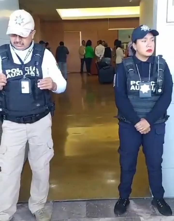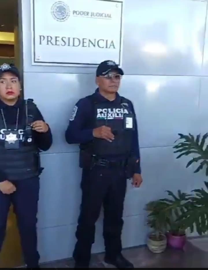 Los trabajadores compartieron imágenes para exhibir el uso de elementos de la Policía Auxiliar para custodiar el acceso a la presidencia, lo que fue considerado como un acto de intimidación.
