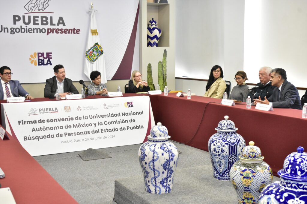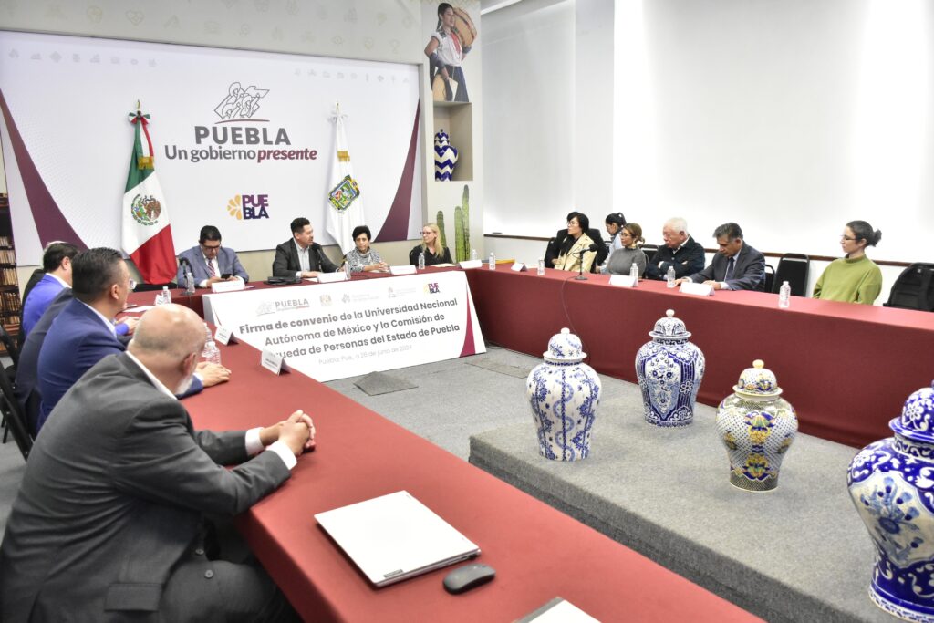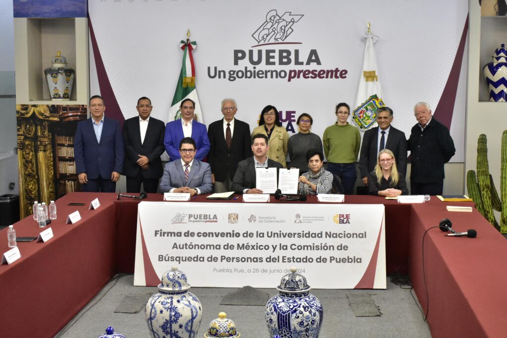 Con el objetivo de profesionalizar y fortalecer la búsqueda de personas en la entidad, el gobierno presente de Sergio Salomón, a través de la Comisión de Búsqueda de Personas del Estado de Puebla, firmó un convenio de colaboración con la Universidad Nacional Autónoma de México (UNAM), para mejorar y eficientar las estrategias de localización de desaparecidos, mediante la integración de conocimientos académicos y tecnologías avanzadas.