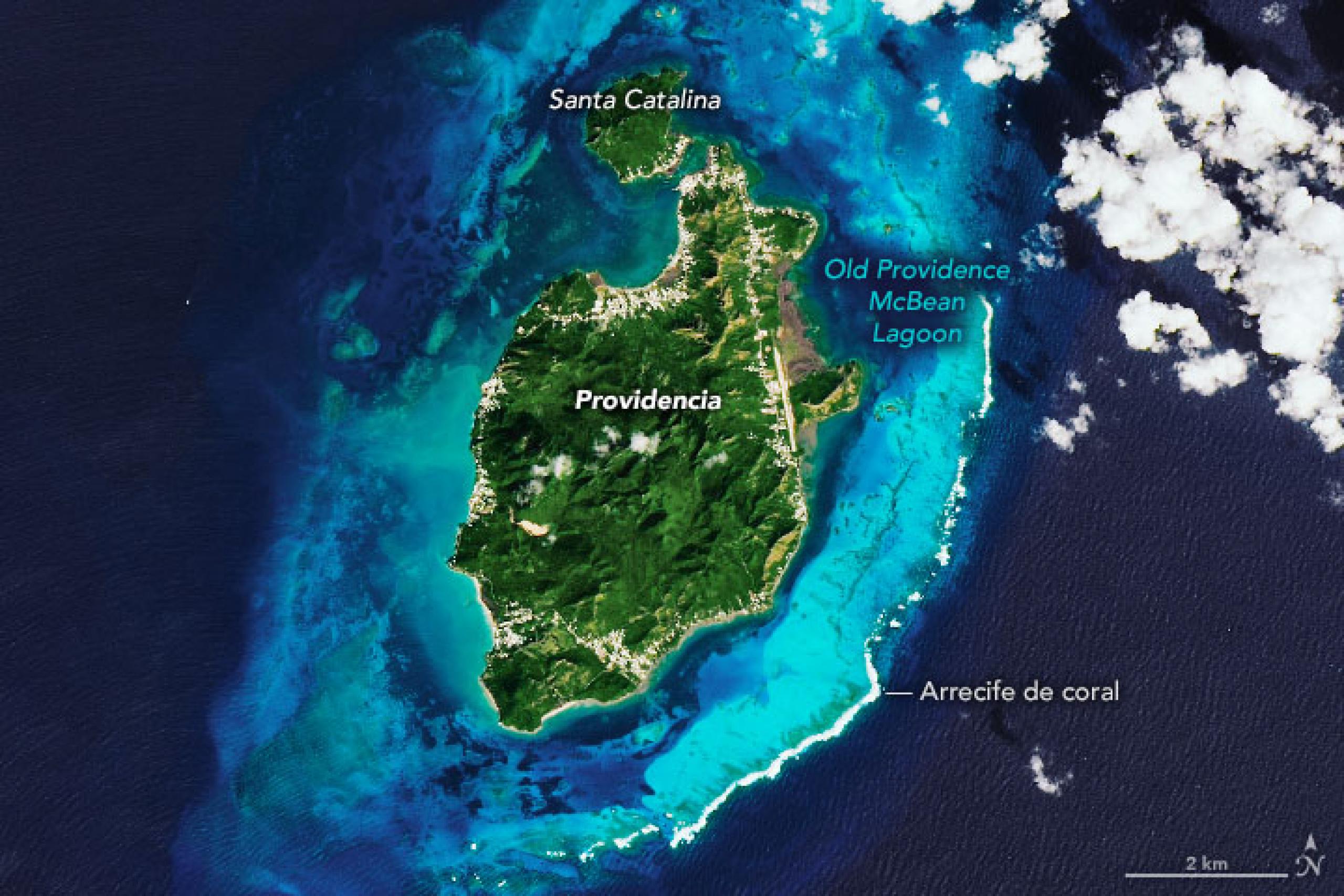 Situada en el suroeste del mar Caribe, Providencia fue alguna vez un santuario isleño para peregrinos y corsarios. Hoy, es sobre todo un refugio para una vida en el Caribe más tranquila en medio de una belleza natural en estado puro. El Generador operacional de imágenes de tierra 2 (OLI-2, por sus siglas en inglés) a bordo de Landsat 9 adquirió esta imagen de la isla el 9 de enero de 2022.