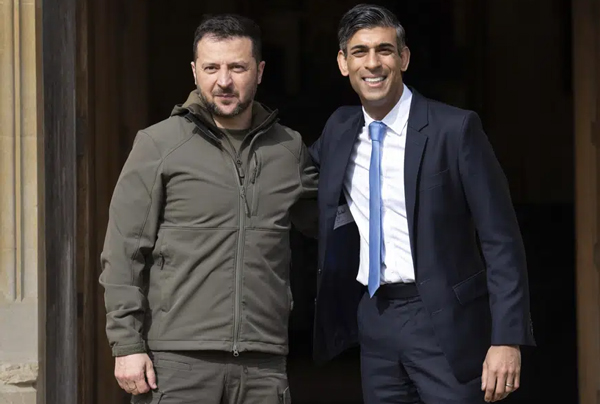 El presidente de Ucrania dio las gracias a Gran Bretaña por su apoyo hasta ahora y dijo que sus conversaciones con Sunak abarcarían “temas muy importantes, apoyo urgente para Ucrania”.
