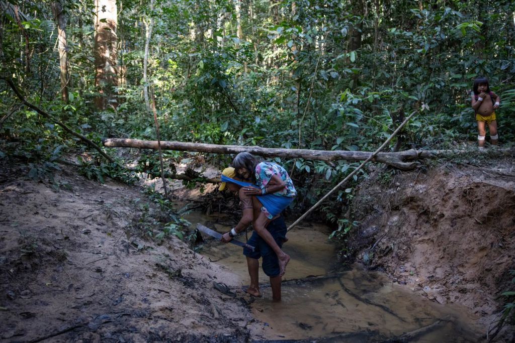 La travesía hacia el poblado designado implicaba una caminata de 20 kilómetros a través de arroyos, troncos caídos y densos bosques tropicales. Sin embargo, al igual que lo ha hecho durante un siglo, Varî Vãti enfrentó los elementos. Logró asegurarse un lugar en el único medio de transporte disponible: la espalda de su hijo.