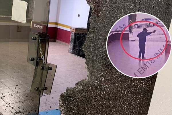 “Las imágenes del atentado fueron captadas por el circuito cerrado de seguridad de la institución y en ellas aparece una persona vestida de negro que desciende de un auto compacto y se aproxima con un arma de fuego en las manos y dispara directo hacia las oficinas administrativas”, informan.