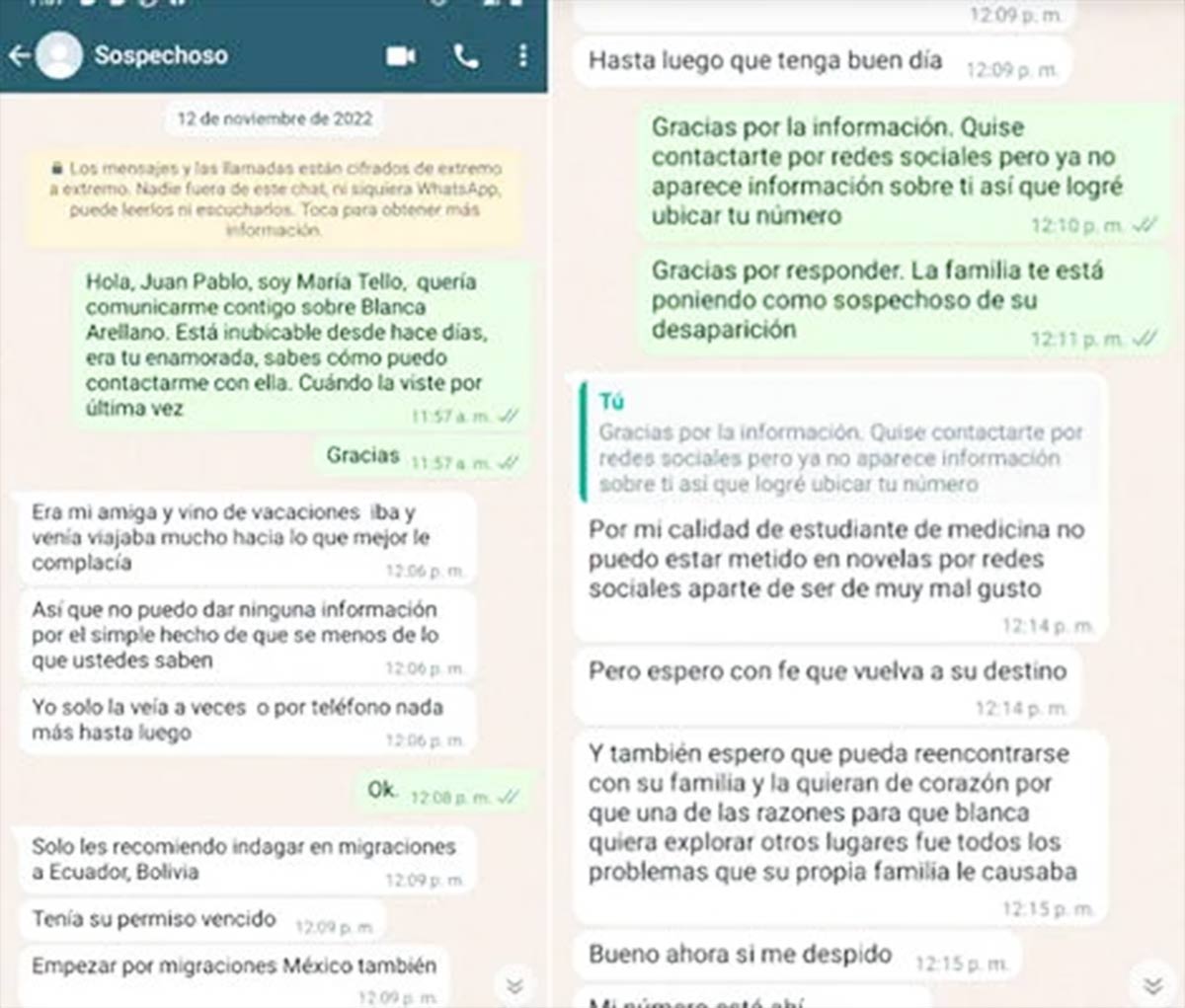 Blanca Olivia viajó a Perú el pasado 27 de julio para conocer a su pareja sentimental, Juan Villafuerte Pinto, a quien conoció a través de internet y luego fue reportada como desaparecida el 7 de noviembre.