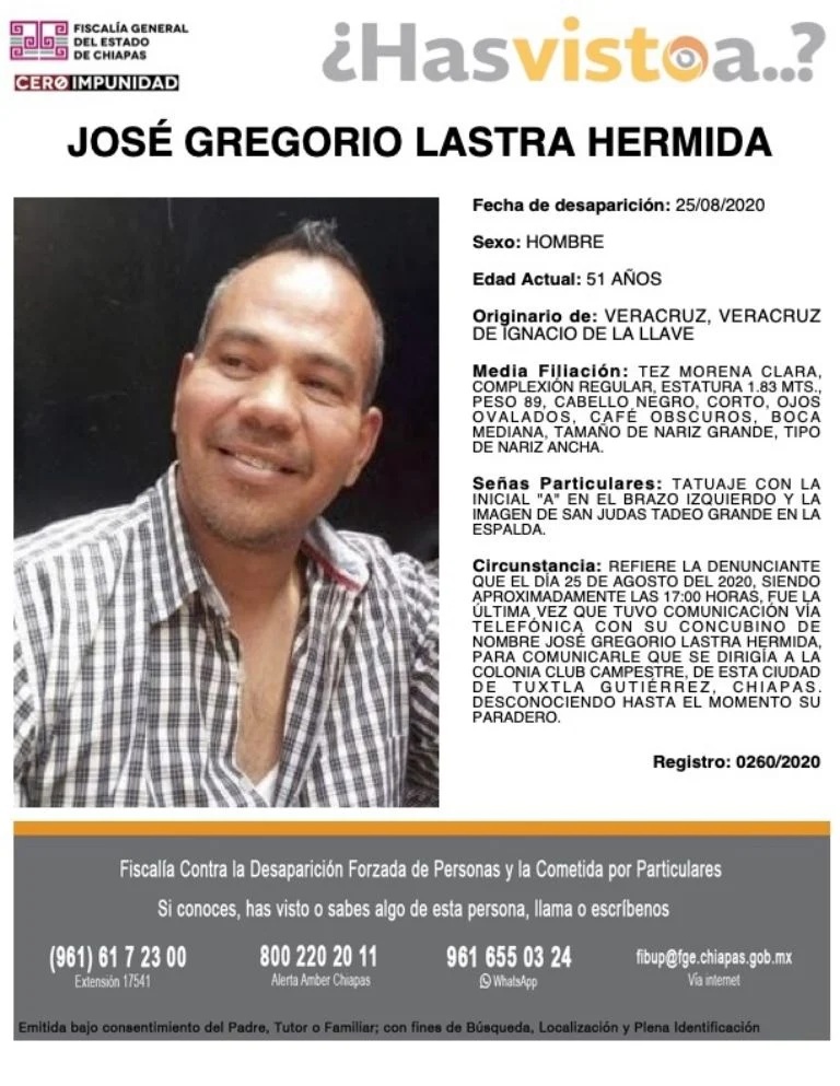 La historia de “Lastra” se remonta al 25 de agosto de 2020, cuando su pareja sentimental reportó que había perdido contacto con él, luego de que le comentara que iría a la colonia Club Campestre, en Tuxtla Gutiérrez Chiapas.